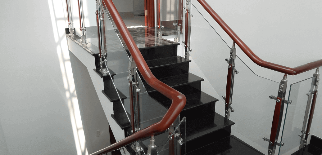 Thông thường khi ta sử dụng chất liệu kính vào cầu thang thỳ độ dày khoảng 10 mm- 12mm và là kính cường lực.